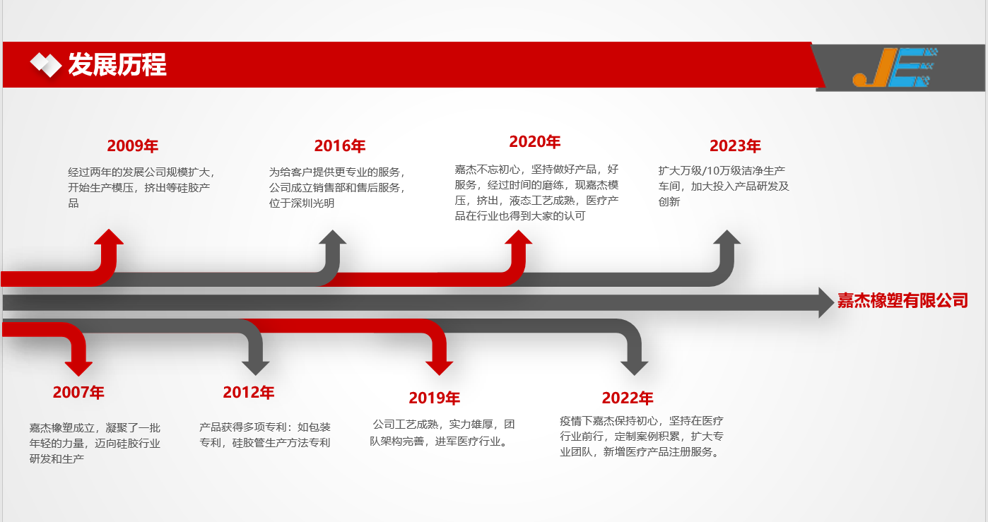 東莞硅膠制品廠: 深圳嘉杰橡塑有限公司于2023年9月中旬搬遷至東莞大嶺山大塘鴻發街,以下是深圳嘉杰公司發展歷程: