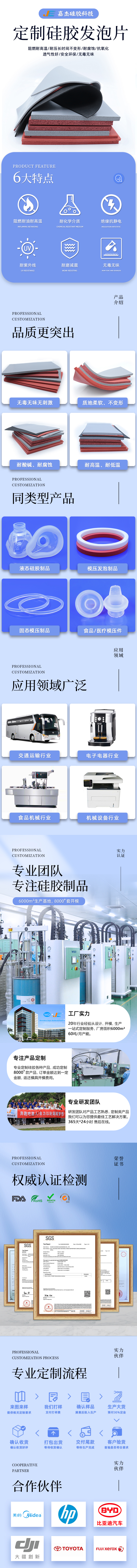硅膠發(fā)泡片規(guī)格: 由于硅膠發(fā)泡片應(yīng)用在許多不同的產(chǎn)品上,所要求的規(guī)格也各不同,深圳市嘉杰橡塑有限公司可根據(jù)您的需求定制! |
