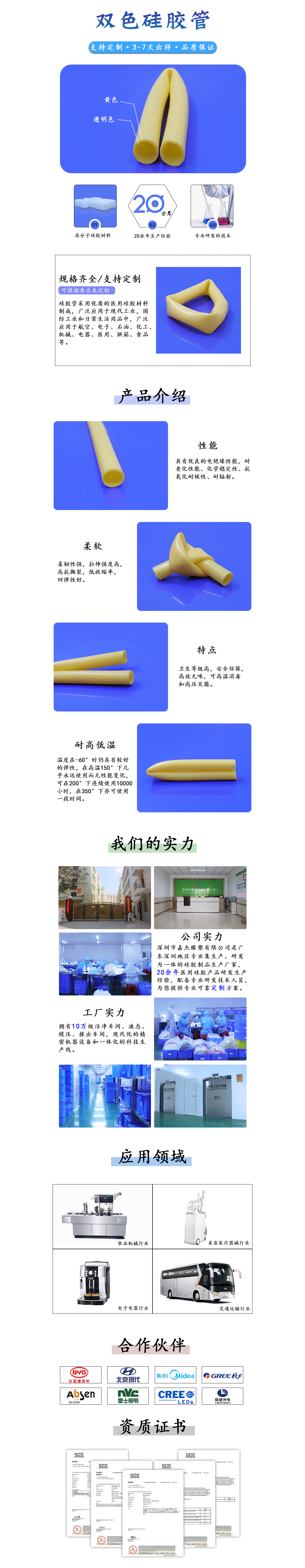 耐高溫食品級透明硅膠管廣泛應用于醫療設備、電子電器、化學實驗、生物制藥、食品加工、健身器材、船舶